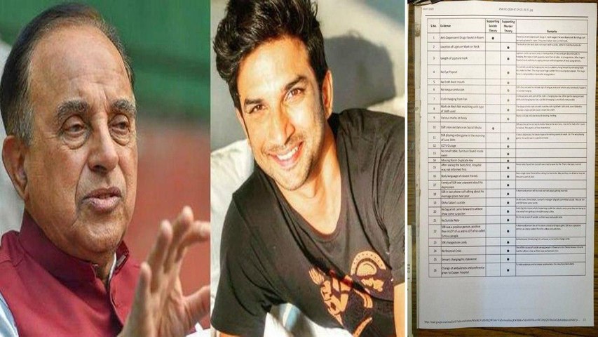 సీసీటీవీ అంతరాయం, గది డూప్లికేట్ తాళం మిస్ అయ్యింది. అతని మేనేజర్ దిశా ముందుగానే సూసైడ్ చేసుకోవడం. సిమ్ కార్డ్ మార్చడం. ఆర్థిక సక్షోభం అసలు లేదు. ఇక అతని సర్వెంట్ స్టేట్మెంట్ చేంజ్ చేస్తున్నాడు... ఇలా ఎన్నో రకాల అనుమానాలను సుబ్రహ్మణ్య స్వామి తన డాక్యుమెంట్ లో తెలియజేశారు.