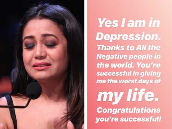 హిమాన్షు నుంచి విడిపోయాక నేహా కక్కర్ పై అనేక కామెంట్స్ వినిపించాయి. ఇప్పటికి కొనసాగుతున్నాయి. సోషల్ మీడియాలో ఆమె ట్రోలింగ్ కూడా గురైంది. దీనితో నేహా కక్కర్ ఎమోషనల్ గా స్పందించింది. నేనిప్పుడు డిప్రెషన్ లో ఉన్నా. ఈ ప్రపంచంలో చెడుగా ఆలోచించే వ్యక్తులందరికి ధన్యవాదాలు. మీ వల్ల చిత్రహింసలు అనిభావించా. ఇంతలా నన్ను మానసిక క్షోభకు గురిచేయడంతో మీరు విజయవంతం అయ్యారు అంటూ నేహా కక్కర్ పేర్కొంది.