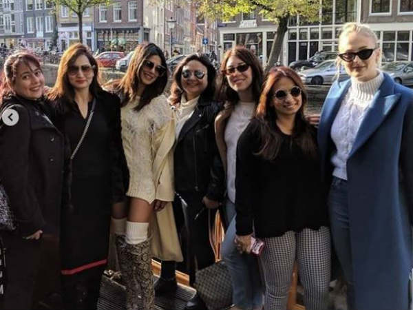 ప్రియాంక చోప్రా ఏర్పాటు చేసిన బ్యాచిలర్ పార్టీలో ఆమె స్నేహితులు శ్రిష్ఠి బెహెల్ ఆర్య, తమన్నా దత్, నటాషా పాల్, చంచల్ డిసౌజా, డనా సప్నిక్, గేమ్స్ ఆఫ్ థ్రోన్స్ స్టార్ సోఫీ టర్నర్ పాల్గొన్నారు.
