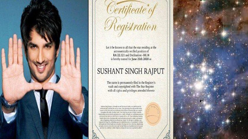 ఖగోళ పరిశోధనపై ఇష్టం చూపించే సుశాంత్ సింగ్కు అమెరికాకు చెందిన రక్ష అనే అభిమాని గొప్పగా నివాళలర్పించారు. ఖగోళంలోని ఓ స్టార్కు సుశాంత్ సింగ్ పేరు పెట్టాలని నిర్ణయించుకొని ఆ ప్రక్రియను పూర్తి చేశారు. అందుకు సంబంధించిన రిజిస్ట్రేషన్ పత్రాన్ని ట్విట్టర్లో పోస్ట్ చేసి ఆ ప్రక్రియను ధృవీకరించారు.