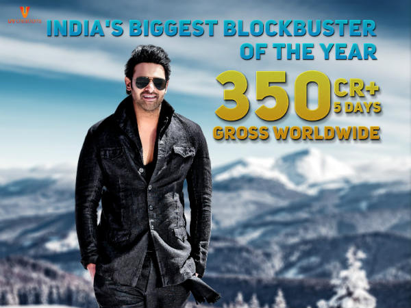 మూడు రోజుల వీకెండ్లో భారీ వసూళ్లను రాబట్టిన ‘సాహో'.. వినాయక చవితి రోజు కూడా మంచి వసూళ్లనే సాధించింది. ఇక, మంగళవారం ఈ సినిమాపై స్పందన ఎలా ఉంటుందోనని అంతా ఆసక్తిగా ఎదురు చూశారు. ఈ నేపథ్యంలో ఆ రోజు కూడా మంచి వసూళ్లనే రాబట్టిందీ సినిమా. దీంతో ప్రపంచవ్యాప్తంగా ఐదు రోజుల్లో ‘సాహో' రూ. 350 కోట్ల గ్రాస్ సాధించింది.