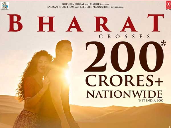 బాలీవుడ్ దర్శకుడు అలీ అబ్బాస్ జాఫర్ దర్శకత్వంలో సల్మాన్ ఖాన్, కత్రినా కైఫ్ జంటగా నటించిన భారత్ చిత్రం బాక్సాఫీస్ వద్ద మరో రికార్డు సొంతం చేసుకొన్నది. ఈ చిత్రం విడుదల నాటి నుంచి 14 రోజున రూ.200 కోట్ల క్లబ్లో చేరింది. సల్మాన్ కెరీర్లో రూ.200 క్లబ్లో చేరిన సినిమా ఇది ఆరోవది కావడం విశేషం. ఈ సినిమా కలెక్షన్ల వివరాల్లోకి వెళితే..