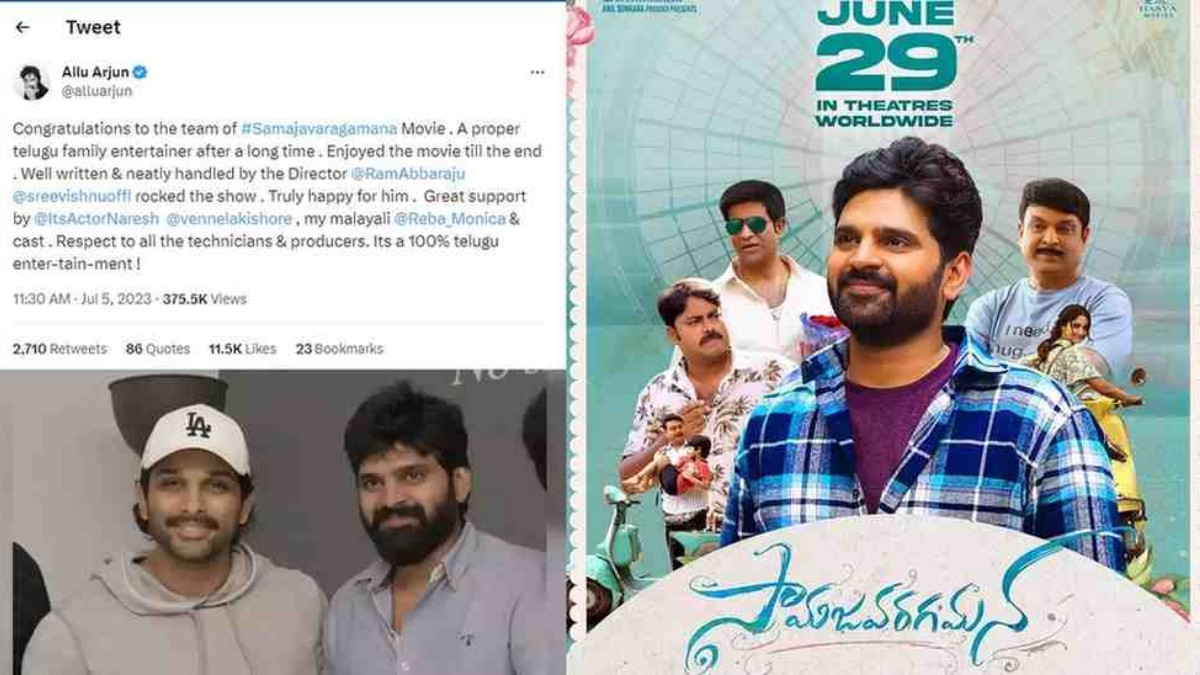 ఈ సినిమా ఫ్యామిలీ ఆడియన్స్ ను ఎంతగానో ఆకట్టుకుంటుంది. అయితే ఈ సినిమాపై అల్లు అర్జున్ కూడా తనదైన శైలిలో పాజిటివ్ గా స్పందించడం సోషల్ మీడియాలో వైరల్ అవుతుంది. మంచి సినిమాలను చూసిన తర్వాత ఎప్పుడూ కూడా తనదైన శైలిలో స్పందించే అల్లు అర్జున్ ఈసారి శ్రీవిష్ణు సినిమాపై కూడా ప్రశంసల జల్లును కురిపించాడు. సామజవరగమన టీమ్ అందరికీ కూడా ప్రత్యేకంగా శుభాకాంక్షలు.