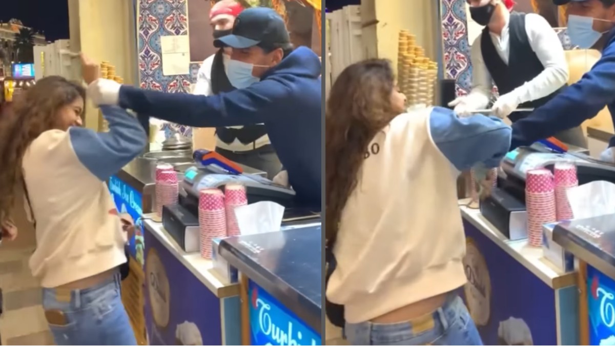 టర్కీష్ ఐస్క్రీమ్ తినేందుకు ఓ చోటికి వెళ్లిన కీర్తి సురేష్ను అక్కడి విక్రేత ఇలాగే ఆడుకున్నాడు. ఆమె కూడా దానిని సరదాగా ఎంజాయ్ చేశారు. అయితే డబ్బులు ఇచ్చే సమయంలో కరెన్సీ నోట్లను అటు ఇటూ తిప్పుతూ రివెంజ్ తీర్చుకున్నారు కీర్తి సురేష్. చివరికి ఐస్ క్రీమ్ షాప్ వ్యక్తి కీర్తి చేయిని గట్టిగా పట్టుకుని డబ్బు లాక్కోవాల్సి వచ్చింది. దీనికి సంబంధించిన వీడియో ప్రస్తుతం సోషల్ మీడియాలో వైరల్ అవుతోంది.