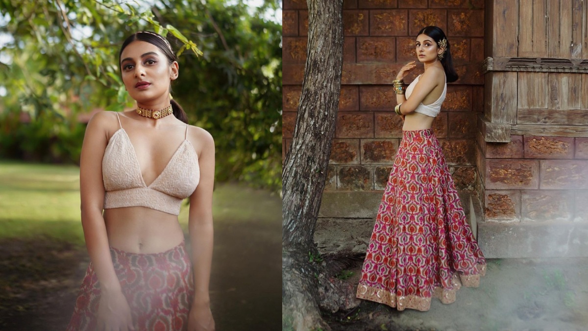 ఈ సారి స్లీవ్ లెస్ లెహంగాలో... తాజాగా మరో కొత్త ఫొటోషూట్ ను పోస్ట్ చేసింది. స్లీవ్ లెస్ లెహంగ డ్రెస్ లో తన లుక్స్ తో మెమరిపించింది. మంచి డిజైన్ ఉన్న ఆరెంజ్ కలర్ లంగా వేసింది. బ్రా టైప్ లో ఉండే బిస్కెక్ కలర్ టాప్ వేసుకుంది. అందులో నుంచి క్లీవేజ్ షో చేస్తూ తన ఘాటు ఎద అందాలను బయటకు చూపించింది. ముఖ్యంగా తన పెద్ద కళ్లతోనూ హావాభావాలు పలికిస్తూ కైపెక్కించింది. అలానే బ్యాక్ పోజులతో టాప్ టు బాటమ్ అని ఒంపుసొంపులను చూపించింది. మొత్తంగా చెప్పాలంటే చూడగానే ఏం హాట్ గా ఉందిరా పిల్లా అన్నట్టుగా పోజులు ఇచ్చి ఆకట్టుకుంది.