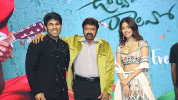 నందమూరి ఫ్యాన్స్కు, అల్లు అభిమానులకు ధన్యవాదాలు. ఈ వేడుకలో పాల్గొనేందుకు వచ్చిన ప్రముఖులకు శుభాభివందనాలు. కొత్త ఒరవడికి తగినట్టుగా సినిమాలు తీస్తూ.. ప్రేక్షకులను మెప్పిస్తున్న నూతన దర్శకులకు, కళాభిమానులు, కళాపోషకులకు హృదయపూర్వక అభినందనలు తెలియజేసుకొంటున్నాను. ఊర్వశివో.. రాక్షసివో సినిమా సినిమాను రూపొందిస్తున్న అల్లు అరవింద్కు ధన్యవాదాలు అని బాలకృష్ణ అన్నారు.