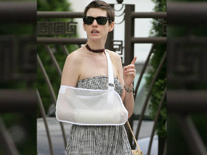 లండన్, జూన్ 1: స్టార్ హీరోయిన్ 'అన్నే హాత్వే' చిన్న చేతి గాయంతో బాధపడుతూ ప్రస్తుతం తన చేతికి జోలె ఉపయోగిస్తోంది. పోయిన వారంలో జరిగిన ఓ చిన్న యాక్సిడెంట్లో మణికట్టు గాయపడినట్లు తెలిపారు. 29 సంవత్సరాల వయసు కలిగిన అన్నే హాత్వే ప్రస్తుతం 'లెస్ మిసరబల్స్' షూటింగ్లో బిజీగా ఉన్నారు.