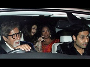 ముంబైలో అడుగుపెట్టిన ఓఫ్రా విన్ఫ్రే ముందుగా.. అమితాబ్ కుటంబాన్ని కలుసుకున్నారు. తమ ఇంటి(జల్సా)ని విన్ఫ్రే సందర్శించిందని.. ఐశ్వర్య కూతుర్ని ముద్దు పేరు(బేటి బి)ని దీవించిందని.. చీరలో ఓఫ్రా చాలా అందంగా ఉందని అమితాబ్ ట్విట్టర్లో ప్రశంసల్ని కురిపించాడు. 2005లో ఐశ్వర్యరాయ్ తొలిసారిగా విన్ఫ్రే టాక్షోలో పాల్గొన్నారు. 2009లో తన భర్త అభిషేక్తో కలిసి టాక్షోకు వెళ్లిన విషయం అందరికి తెలిసిందే.