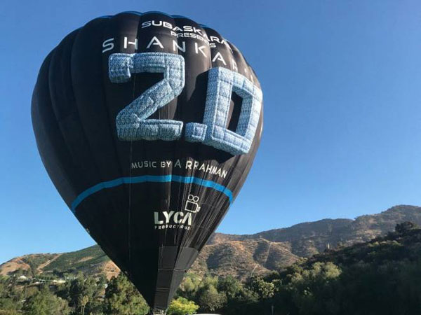సినిమా ప్రమోసన్లో భాగంగా అమెరికాలో వరల్డ్ సినిమా కేంద్రమైన హాలీవుడ్ లేక్ పార్క్ వద్ద రోబో '2.0' హాట్ బెలూన్ ఎగురవేశారు. '2.0' చిత్రానికి సంబందించిన ఫోటోలు ముద్రించిన ఈ 100 అడుగుల హాట్ బెలూన్ ద్వారా సినిమాకు ప్రచారం కల్పించడానికి వినూత్నంగా ప్రయత్నించారు.