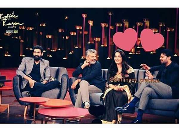 కరణ్ జోహార్ నిర్వహిస్తున్న కాఫీ విత్ కరణ్ షో బాగా పాపులర్ అయింది. కరణ్ జోహార్ నిర్వహిస్తున్న ఈ షోకు పలువురు బాలీవుడ్ సెలెబ్రిటీలు హాజరవుతున్నారు. తొలిసారి టాలీవుడ్ నుంచి రాజమౌళి, రానా, ప్రభాస్ ఈ షోకు హాజరు కావడం విశేషం. అభిమానులు కరణ్ జోహార్ పై తీవ్రంగా ఒత్తిడి తెస్తుండడంతో ఈ బాహుబలి త్రయాన్ని ఆహ్వానించారు. కానీ ఈ షోలో దేవసేన అనుష్క లేకపోవడంతో ఫ్యాన్స్ కొంత నిరాశకు లోనయ్యారు.