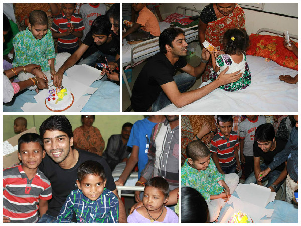 కేన్సర్ వ్యాధితో బాధ పడుతూ ఆసుపత్రిలో చికిత్స పొందుతున్న బాలలతో కలిసి అల్లరి నరేష్.