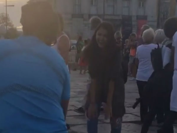 మామూలుగా తీన్మార్ వినిపిస్తేనే మనకే కాలు ఆగదు. ఇక చుట్టూ ఉన్న జమ్నం కూదా అదే మూద్ లో ఉండి అంతా డాన్స్ తో ఊగిపోతూంటే అసలు ఆగబుద్దేస్తుందా..? మనమే కాదు అందుకే బాలీవుడ్ బ్యూటీ అనుష్క శర్మ కూడా అంతే తనని తాను కంట్రోల్ చేసుకోలేక వీధుల్లో ఇలా స్టెప్పులు వేసింది. ఓ కూల్ డ్యాన్సర్ తో కలిసి రోడ్డు మీదే అదరగొట్టే డ్యాన్సులు చేసింది. అయితే ఇదంతా మన దేశం లో కాదులెందీ. ఇక్కడ అయితే ఇంకేమైనా ఉందా... కిలోమీటర్లకొద్దీ ట్రాఫిక్ జామే. అనుష్కని చూస్తూ నిలబడ్ద జనాన్ని కంట్రోల్ చేయటం కూదా కష్తమయ్యేది. పోర్చుగల్లోని లిస్బెన్ లో ఈ చిందుల ప్రోగ్రాం అన్నమాట.
