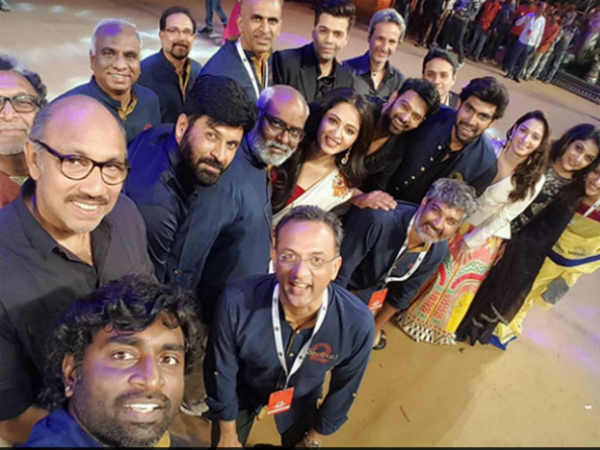 బాహుబలి ప్రీ రిలీజ్ కార్యక్రమం అనంతరం బాహుబలి టీమ్ అంతా కలిసి సెల్ఫీ దిగారు. ఈ సెల్ఫీ ఫొటోలో రానా దగ్గుబాటి, ప్రభాస్, అనుష్క శెట్టి, తమన్నా భాటియా, రమ్య కృష్ణ, సత్యరాజ్, నాజర్, డైరెక్టర్ రాజమౌళి, సెంథిల్ కుమార్, శోభు యార్లగడ్డ, ప్రసాద్, కరణ్ జోహర్ తదితరులు ఉన్నారు. ఈ సెల్ఫీ దిగడానికి బాలీవుడ్ ఫిలిం మేకర్ కరణ్ జోహర్ చొరవ తీసుకొన్నారు.