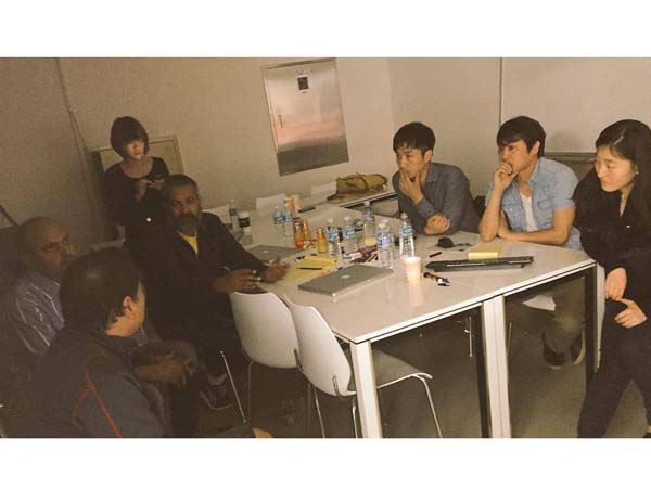 హైదరాబాద్: 'బాహుబలి' సినిమా నిర్మాణానంతర కార్యక్రమాలు శరవేగంగా జరుగుతున్నాయి. విజువల్ ఎఫెక్ట్స్ పనుల కోసం రాజమౌళి బృందం సియోల్లో ఉంది. అక్కడ కొరియన్, చైనీస్ సాంకేతిక నిపుణులతో రాజమౌళి చర్చిస్తున్నప్పుడు ఈ ఫొటో తీశారు చిత్ర నిర్మాతల్లో ఒకరైన శోభు యార్లగడ్డ. ఆ ఫొటోను అభిమానులతో పంచుకున్నారు జక్కన్న.