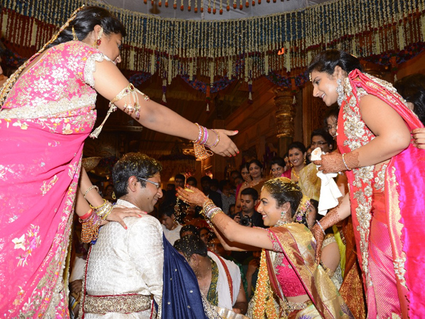 బాలయ్య కూతురు తేజస్విని-శ్రీభరత్ వివాహం అంగరంగ వైభవంగా జరిగింది. వదూవరుల తలంబ్రాల దృశ్యాన్ని ఇక్కడున్న దృశ్యంలో చూడొచ్చు. పెళ్లి వేడుకలో తేజస్విని, శ్రీభరత్ ఎంతో ఉత్సాహంగా కనిపించారు.