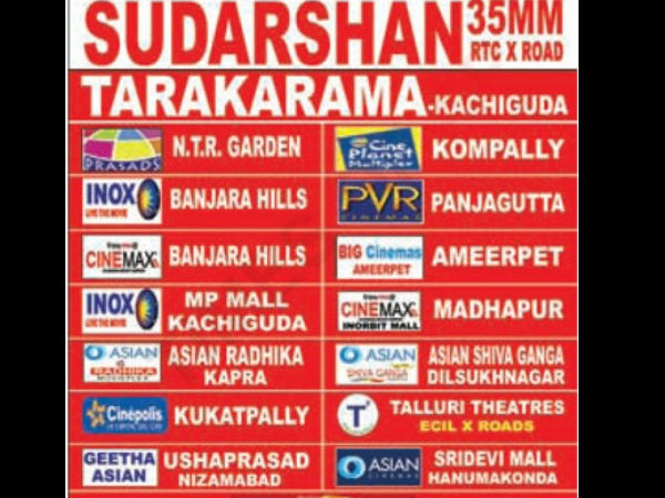 తెలుగు సినిమా పరిశ్రమకు ప్రధాన ఆదాయ వనరుగా ఉన్న హైదరాబాద్ ఏరియాలో ఈ చిత్రాన్ని గ్లోబల్ మూవీస్ సంస్థ విడుదల చేస్తోంది. తాజాగా థియేటర్లు కూడా ఖరారయ్యాయి. అందుకు సంబంధించిన వివరాలు స్లైడ్ షోలో....