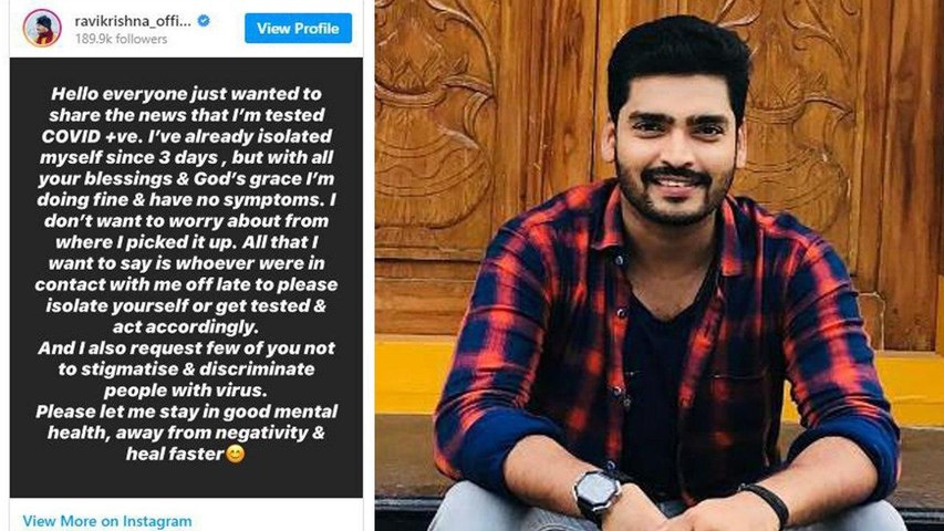 అంతేకాదు, కరోనా ప్రమాదకరమైన వ్యాధి అయినప్పటికీ... జాగ్రత్తలు తీసుకుంటే త్వరగా కోలుకోవచ్చని రవికృష్ణ వెల్లడించాడు. ‘కరోనా సోకిన వారిని దయచేసి వివక్షతో చూడకండి. అలా చేయడం వల్ల మేము మానసికంగా బలహీనం అయిపోతాము. మాకు మద్దతుగా నిలిస్తే త్వరగా కోలుకుంటాము' అంటూ అతడు ప్రేక్షకులను, సామాన్యులను అభ్యర్ధించాడు.