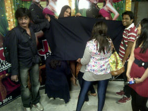 హాట్ హీరోయిన్ బిపాసాబసు డ్రెస్ ఛేంజ్ చేసుకుంటున్న ఫోటోని ట్విట్టర్ లో పెట్టారు హీరో మాధవన్. మాధవన్, బిపాసాబసు జోడీ బ్రేకర్స్ ప్రమోషన్ లో భాగంగా ఇద్దరూ టూర్ వేస్తున్నారు. అప్పుడు ఆ స్టేజీపైనే బిపాసా బసు డ్రెస్ ఛేంజ్ చేసుకుంది. ఆ ఫోటోని తన ట్విట్టర్ లో పెట్టారు. అయితే ఆ ఫోటోలో ఇద్దరు బ్లాక్ మాస్క్ పట్టుకుని బిపాసాని కవర్ చేస్తూ ఫ్యాన్స్ ని డిజప్పాయింట్ చేస్తున్నారు. ఇక జోడీ బ్రేకర్స్ చిత్రం విషయానికి వస్తే... ఈ చిత్రంలో బిపాసాబసు హీరోయిన్ గా చేస్తోంది. ఇక మాధవన్, బిపాసాబసు కలిసి నటించటంపై అందరూ వింతగా చెప్పుకుంటున్న తరుణంలో మాధవన్ మాత్రం తమ జోడీ తెరపై మెరుపులు కురిపిస్తుందని చెప్పుకుంటున్నాడు.