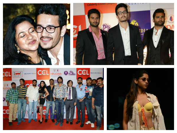 సిసిఎల్ చారిటీ కార్యక్రమంలో పాల్గొన్న సుధీర్ బాబు, అఖిల్, సచిన్ జోషి.