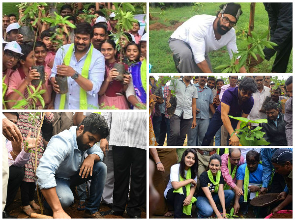 గో గ్రీన్, సేవ్ ది ప్లానెట్, వృక్షో రక్షతి రక్షిత: అనే నినాదంతో సాగుతున్నఈ మహత్తర కార్యక్రమంలో టాలీవుడ్ స్టార్స్ కూడా పాలు పంచుకున్నారు. మెగా స్టార్ చిరంజీవి, కింగ్ నాగార్జున, బన్నీ, రానా, రాజేంద్రప్రసాద్, రకుల్ ప్రీత్ సింగ్, అమల అక్కినేని, రాజేంద్ర ప్రసాద్, శ్రీకాంత్, రాశి ఖన్నా, కాలకేయ ప్రభాకర్, హేమ తదితరులు పాలు పంచుకున్నారు.
