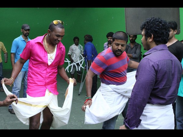 ఇటీవలే చెన్నైలో బ్రేవోపై సాంగు చిత్రీకరించారు. తమిళ సాంప్రదాయ వస్త్రధారణలో బ్రేవో వేసిన మాస్ స్టెప్పులు సినిమాకు హైలెట్ కానున్నాయి. తాజాగా అందుకు సంబంధించిన ఫోటోలు కూడా మీడియాకు విడుదల చేసారు. మొత్తానికి డ్వైన్ బ్రేవో ద్వారా ఆ సినిమా మంచి పబ్లిసిటీ దక్కుతోంది.