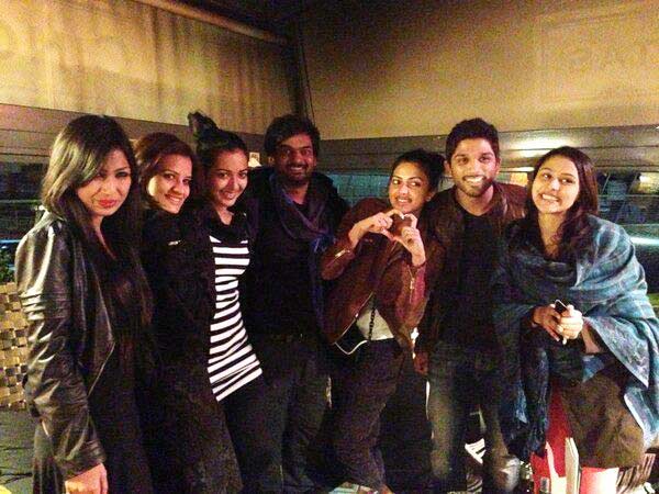 ఇద్దరమ్మాయిలతో టీం వాలెంటైన్స్ డే పార్టీ. పార్టీలో పాల్గొన్న అల్లు అర్జున్, పూరి జగన్నాథ్, అమలపాల్, కేథరీన్, ఇతర యూనిట్ సభ్యులు.