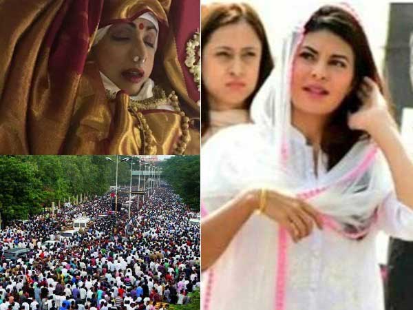 ఇప్పుడే ఎదుగుతున్న తన ఇద్దరు కుమార్తెలని వదలిపెట్టి శ్రీదేవి వెళ్లిపోవడం అందరిని కలచివేసింది. కొంత మంది శ్రీదేవి పార్థివదేహానికి నివాళులు అర్పించిన తరువాత కన్నీటి పర్యంతం అయ్యారు. మరికొంత మంది ప్రముఖులు మౌనంగా బాధతో వెళ్లిపోయారు. కానీ శ్రీదేవి అంత్యక్రియల సందర్భంగా శ్రీలంక సుందరి జాక్వలిన్ ఫెర్నాండేజ్ కనిపించిన తీరు శ్రీదేవి అభిమానులకు ఆగ్రహం తెప్పించింది.