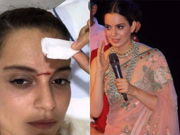 బాలీవుడ్ హీరోయిన్ కంగనా రనౌత్కు కత్తి గాయాలయ్యాయి. ప్రస్తుతం ఆమె నటిస్తున్న 'మణికర్ణిక' సినిమా షూటింగులో భాగంగా తన కో స్టార్ నిహార్ ప్యాండ్యాతో కలిసి కత్తి యుద్ధం చేస్తుండగా కత్తి దూయడం రాంగ్ టైమింగ్ కాడంతో ఆమె మొహంపై కనుబొమ్మల క్రింది భాగంలో గాయమైంది.