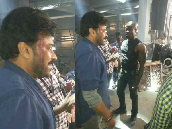 ఇటీవల చిరంజీవిని ఆయన నివాసంలో సీనియర్ ఫిల్మ్ పర్సనాలిటీ, మాజీ కేంద్రమంత్రి బండారు దత్తాత్రేయ కలిసారు. ఆ సమయంలో కూడా చిరంజీవి ఫేసుపై రక్తం మరకలు కనిపించాయి. షూటింగ్ నుండి నేరుగా ఇంటికి వచ్చిన చిరంజీవి... ఆ మరకలు వాష్ చేసుకోకుండానే దత్తన్నను కలిసినట్లు స్పష్టమవుతోంది.