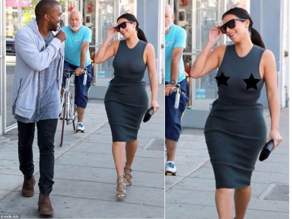 వెస్ట్ హాలీవుడ్ ప్రాంతానికి తన భర్త కెన్నీ వెస్ట్తో కలిసి వెళ్లిన కిమ్ కర్ధాషియాన్ గ్రే కలర్ స్కిన్ టైట్ టాప్ ధరించింది. అయితే ఆమె బ్రా ధరించక పోవడంతో ఉల్లిపొరలాంటి ఆ టాప్ నుండి ఆమె ఎద అందాలు బట్టబయలయ్యాయి. కిమ్ కర్ధాషియాన్ ఇలా చేసిన విషయం ఇపుడు ఇంటర్నేషనల్ మీడియాలో హాట్ టాపిక్ అయింది.
