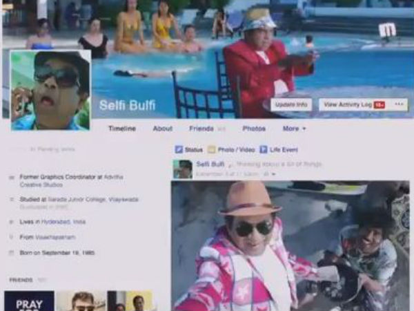 హైదరాబాద్: చేసే ప్రతీ ఎదవ పనీ ఫేస్ బుక్ లో పెడితే ఇలాగే ఉంటుంది అంటున్నారు సునీల్...బ్రహ్మానందంతో. సెల్ఫీ బర్ఫీ పేరుతో తనకో ఫేస్ బుక్ పేజీ ఓపెన్ చేసుకుని, ప్రతీవాళ్లతో సెల్ఫీ దిగి....ఫేస్ బుక్ లో పెట్టే పాత్రలో బ్రహ్మీ కనపడుతున్నాడు. ఇంతకీ ఏ సినిమాలో అంటారా...