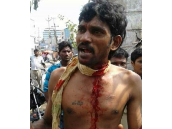 మెగా పిచ్చి: బ్లేడుతో గొంతుకోసుకున్న అభిమాని (ఫోటో)