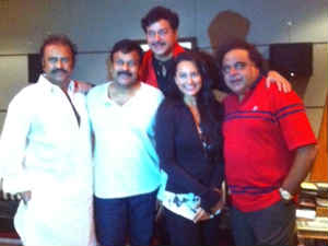 ఈ పార్టీకి బాలీవుడ్ నుంచి శత్రుఘ్న సిన్హా, సుభాష్ ఘై, సోనాక్షి సిన్హా, కన్నడ పరిశ్రమ నుంచి అంబరీష్, సుమలత, టాలీవుడ్ నుంచి చిరంజీవి వంటి నిన్నటి తరం ప్రముఖులు విచ్చేశారు. ఈ పార్టీ సందర్భంగా శత్రుఘ్న సిన్హా తనయ సోనాక్షి సిన్హా ముచ్చటపడి తన డాడీ మిత్రులతో ఫోటో దిగింది. ఆ ఫోటోని ఈరోజు తను ట్విట్టెర్ లో పోస్ట్ చేసింది. అదే ఈ ఫోటో..ఇక పోతే చిరంజీవి మళ్ళీ మోహన్ బాబు ఇంట్లో మెరవడం ఓ విశేషం..ఈ విందు కార్యక్రమంలో అందరూ సినిమాల గురించి, రాజకీయాల గురించి మాట్లాడుకున్నారని సమాచారం..!
