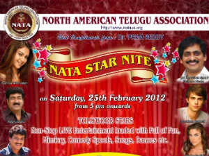 నార్త్ అమెరికన్ తెలుగు అసోసియేషన్(NATA) ఆధ్వర్యంలో ఫిబ్రవరి 25న స్టార్ నైట్ కార్యక్రమాన్ని ఏర్పాటు చేశారు. ఈ వేడుకకు ముఖ్య అతిథిగా దర్శకుడు ఎస్.వి.కృష్ణారెడ్డి హాజరు కానున్నారు. అందాల తారలు కామ్నా జఠ్మలాని, పూనం కౌర్ , సౌమ్య రాయ్, కల్పనా, పద్మిని డాన్సు లతో కను విందు చేయనున్నారు. హాస్య నటులు , రఘు బాబు , ఉత్తేజ్, శివాజీ రాజా తదితరులు హాస్యపు జల్లులు కురిపించబోతున్నారు. అభినయ కృష్ణ మిమిక్రీ చేస్తారు. శ్రీలేఖ , సింహ గానామృతంతో సందడి చేయనున్నారు. కాలిఫోర్నియా గ్లెండోరాలోని హగ్ పెర్ఫార్మింగ్ ఆర్ట్స్ సెంటర్లో ఈ కార్యక్రమం జరుగనుంది.