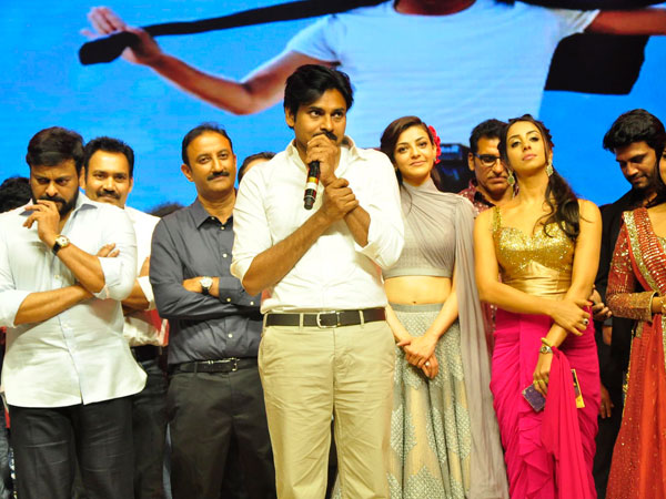 'కౌబోయ్ తరహాలో ఉండి మనకు దగ్గరగా ఉండేలా సినిమా చేయాలనుండేది. ఈ స్క్రిప్ట్ రాయడానికి నాకు రెండున్నరేళ్లు పట్టింది. ఇంత టైం నన్ను భరించిన శరత్ మరార్ కు థాంక్స్. ఈరోస్ సంస్థ సునీల్ లుల్లా గారికి థాంక్స్. కాజల్ పెర్ ఫార్మెన్స్ బావుంది. నాతోటి నటీనటులకు, టెక్నిషియన్స్ కు థాంక్స్' అన్నారు పవన్ కళ్యాణ్.