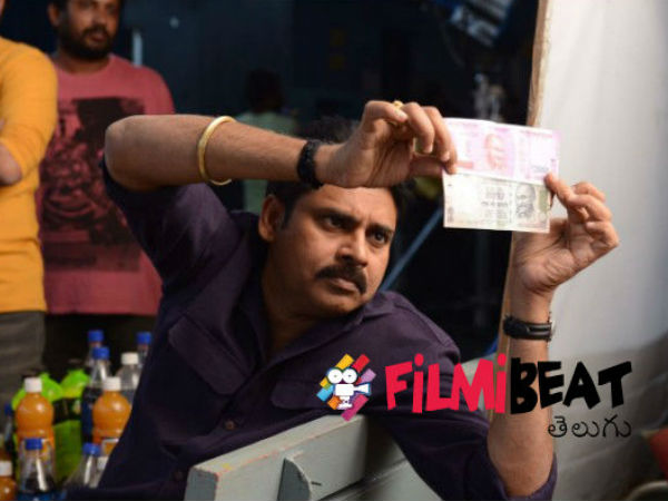 కాటమరాయుడు సెట్లో షూటింగులో ఉన్న పవన్ కళ్యాణ్... కొత్త రూ. 2000 నోటు తన చేతికి రావడంతో పాత నోటును, కొత్త నోటును పరిశీలిస్తూ ఇలా....