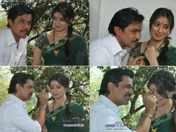 తొలి సన్నివేశంలో హీరో అర్జున్, లక్ష్మీరాయ్ హావభావాలు.