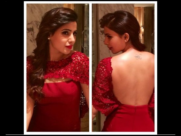 ఇలాంటి విషయాల్లో ఎప్పుడూ ఓ అడుగు ముందే ఉంటుంది టాలీవుడ్ హీరోయిన్ సమంత. ఇటీవల ఆమె ఓ కార్యక్రమానికి హాజరైన సందర్భంగా ప్రత్యేకంగా డిజైన్ చేసిన ఎరుపు రంగు డ్రెస్సులో అందాల దేవతలా మెరిసి పోయింది. ఆమె వీపు అందాలను మరింత హాట్గా చూపించేలా ఆ డ్రెస్ డిజైన్ చేసారు.