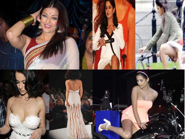ఐశ్వర్య రాయ్ పై చిత్రంలో బ్యూటిఫుల్ గా కనిపిస్తోంది. కానీ చిత్రాన్ని క్షుణ్ణంగా వీక్షిస్తే ఆమె వస్త్ర దారణలో ఓ లోపం మీకు కనిపిస్తుంది. కత్రినా కైఫ్ తన చుట్టూ ఫోటోగ్రాఫర్లు ఉన్న సంగతి మరిచిపోయి దాచుకోవాల్సిన అందాలను గాలికొదిలేసింది. ఇక కంగనా రనౌత్ వేసుకున్న గౌను సెక్సీగా, అందగానే ఉంది కానీ.... ఫోటో గ్రాఫర్లకు మరీ ఇలాంటి చాన్స్ ఇవ్వడం, ఇబ్బంది పడుతున్నట్లు మొహం పెట్టడం చర్చనీయాంశం అయింది. యానా గుప్త అప్పట్లో ఓ కార్యక్రమానికి సింగిల్ పీస్ మినీ స్కర్ట్ వేసుకుని వచ్చి అతి ముఖ్యమైన లోదుస్తువు పాంటీ వేసుకోవడం మరిచిపోయి వార్తల్లో నిలిచిన సంగతి తెలిసిందే. ఇతరుల సంగతేమోగానీ.... పూనమ్ పాండే మాత్రం కావాలనే తన అండర్ వేర్ కనిపించేలా ఎక్స్ ఫోజింగ్ చేసిందనే విమర్శలు వినిపించాయి. ఇక ఇటీవలే తెరంగ్రేటం చేసిన పరిణితి చోప్రా సెక్సీగా కనిపించాలని శరీరానికి అతుక్కుపోయే డ్రెస్ వేసుకొచ్చింది. అయితే ఆమె అందాల బరువును తట్టుకోని ఆ డ్రెస్ వెనక భాగంలో చిరిగి పోయింది. అది గమనించిన ఓ ఔత్సాహిక ఫోటో గ్రాఫర్ వెంటనే దాన్ని తన కెమెరాలో బంధించాడు.