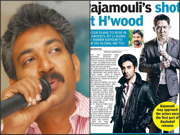 రాజమౌళి ట్వీట్ చేస్తూ.. "జెట్ లీ? రణబీర్? ఇవన్నీ ఎక్కడ నుంచి పుడుతున్నాయి.?? హాలీవుడ్ కూడాను..? అక్కడికి టిక్కెట్ తీసుకుని ప్లేన్ ఎక్కినంత ఈజీగా చెప్తున్నారు. బాహుబలి పూర్తయ్యేంతవరకూ నేను వేరే దాని గురించి ఆలోచించేటంత తీరక లేదు...అలాంటిదేమన్నా ఉంటే నేనే డిక్లేర్ చేసి చెప్తాను.. ధాంక్యూ .." అంటూ ఖండించారు.