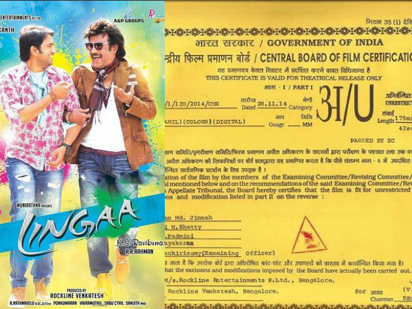 ఫీవర్ మొదలైంది:‘లింగ’ సెన్సార్ సర్టిఫికేట్ ఇదే...(ఫొటోలు)