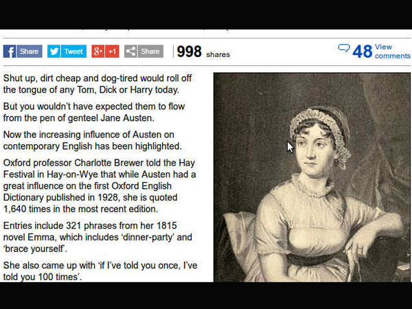 రజనీకాంత్కి 'బాషా' సినిమా ద్వారానే మాస్ ఇమేజ్ వచ్చిందని చెప్పక తప్పదు. ముఖ్యంగా సినిమాలోని ఈ డైలాగ్ అప్పట్లో సెన్సేషన్ అయింది. మరి ఆ డైలాగ్ ఆ నవల నుంచి కాపీ కొట్టిందా? లేక అనుకోకుండా యాక్సిడెంటల్ గా జరిగిందా? అనే ప్రశ్నకు దర్శకుడు సురేష్ కృష్ణన్ మాత్రమే సమాధానం చెప్పగలరు. క్రింది ఇమేజ్ లో...జాన్ ఆస్టిన్ నవలలోని పదాలను గమనించవచ్చు.