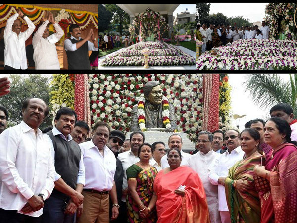 రాజ్ కుమార్ స్మాకర మందిరం ప్రారంభోత్సవానికి హాజరైన సౌతిండియా స్టార్స్ రజనీకాంత్, చిరంజీవి, అంబరీష్ తదితరులు.