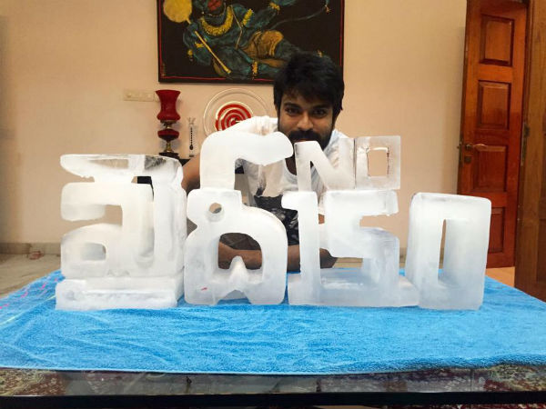 రామ్ చరణ్ ను మరింత ఆనంద పెట్టే ప్రయత్నం చేసాడు అభిమాని. ఐస్ తో ఖైదీ నెం 150 అని తయు చేసి చెర్రీకి బహుమతిగా ఇచ్చారు.