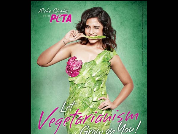 తాజాగా 'పెటా' కోసం అందాలు ఆరబోసిన భామల లిస్టులో ఇప్పుడు బాలీవుడ్ బ్యూటీ రీచా చద్దా కూడా చేరింది. మాసం తినడం మానేయండి శాఖాహారులుగా మారండి అంటూ ఇలా ఒంటిపై ఆకులు మాత్రమే పెటా యాడ్ కోసం ఫోటోలకు ఫోజులు ఇచ్చింది.