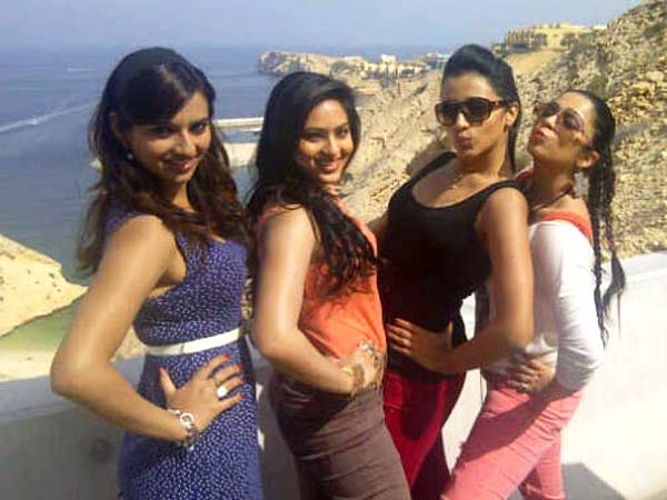 తాజాగా ఈ చిత్రం షూటింగ్ దుబాయ్, మస్కట్లో జరుగుతోంది. షూటింగు స్పాట్లో ఈ నలుగురు భామలు కలిసి కెమెరా ముందు ఇలా ఫోజు ఇచ్చారు. సినిమాకు సంబంధించి ఈ ఫోటోనే ఫస్ట్ లుక్ ఫోటోగా పేర్కొంటున్నారు. ఈ చిత్రం తెలుగుతో పాటు తమిళం, కన్నడలో విడుదల కానుంది.