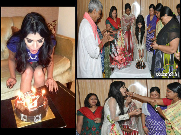 షెర్లిన్ చోప్రా బర్త్ డేను పురస్కరించుకుని థీరజ్ సేథ్, కోమల్ డి సేథ్ బర్త్ డే కేక్ తీసుకుని ఆమె నివాసానికి రాగా....సెక్సీ డ్రెస్ లో ఉన్న షెర్లిన్ ఇలా కేక్ కట్ చేస్తూ ఫోటోలకు ఫోజు ఇచ్చింది.