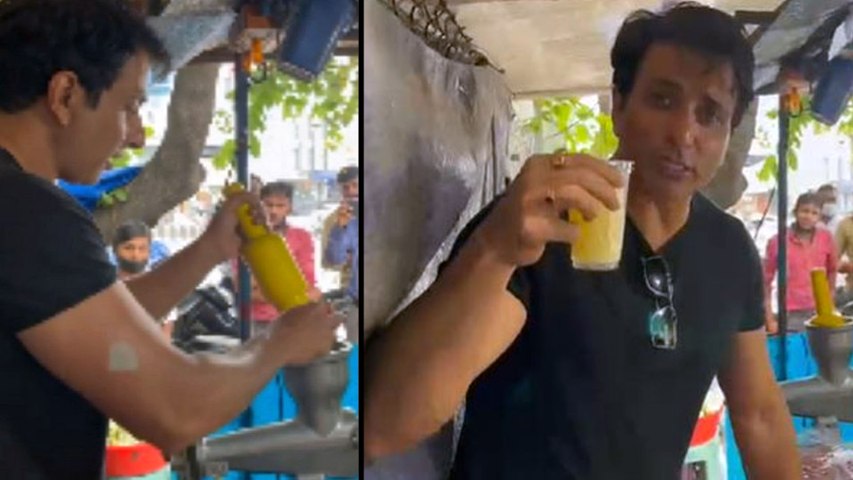 బంజారా హిల్స్లో జ్యూస్ షాప్లో సోనుసూద్.. చిరు వ్యాపారికి అండగా.. పళ్ల రసం తీసి..