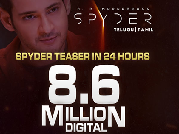 మహేష్ బాబు ‘స్పైడర్’ టీజర్ రికార్డు క్రియేట్ చేసింది. 24 గంటల్లో 8.6 మిలియన్ వ్యూస్ సాధించింది.