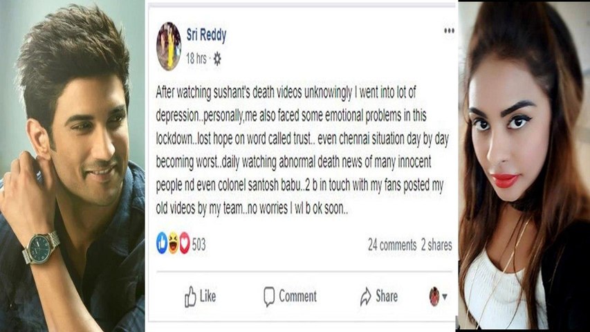 తాజాగా శ్రీ రెడ్డి ఓ పోస్ట్ చేస్తూ.. ‘సుశాంత్ మరణానికి సంబంధించిన వీడియోలు తెలియకుండానే నన్ను డిప్రెషన్కు గురయ్యాను. వ్యక్తిగతంగా నేను కూడా ఈ లాక్ డౌన్లో ఎన్నో ఎమోషనల్ ప్రాబ్లమ్స్ చవిచూశాను. పైగా చెన్నై పరిస్థితి రోజురోజుకూ దిగజారిపోతోంది. ఎంతోమంది అమాయకులు, కల్నల్ సంతోష్ బాబు వంటి వారు చనిపోతున్నారు.. మీతో టచ్లో ఉండటానికి నా టీమ్ పాత వీడియోలను పోస్ట్ చేసింది. నేను మళ్లీ త్వరలోనే మీ ముందుకు వస్తాను' అని పేర్కొంది.